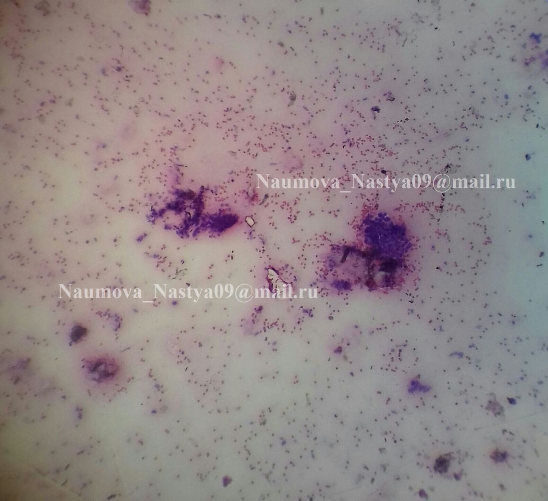 Соскоб с кожи волосистой части головы. Гематоксилин-эозин, х10, х100